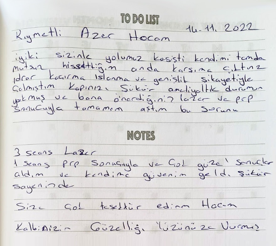 ich bin froh, dass sich unsere Wege genau in dem Moment gekreuzt haben, als ich mich unglücklich fühlte. Ich klopfte an Ihre Tür mit der Beschwerde der Harninkontinenz, des Einnässens und der Vergrößerung, Gott sei Dank hatte ich keine chirurgische Bedingung und ich habe dieses Problem mit dem Laser- und Prp-Ergebnis, das Sie mir empfohlen haben, vollständig überwunden.