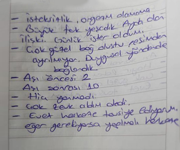 İsteksizlik, orgazm olamama sonrası orgazm aşısı ile büyük fark yaşadık. Ayda olan ilişkiyi günlük ister oldum. Çok güzel bir bağ oluştu, peşimden ayrılmıyor, duygusal yöndende bağlandık. Orgazm aşısı öncesi 2 sonrası 10, herkese tavsiye ediyorum.