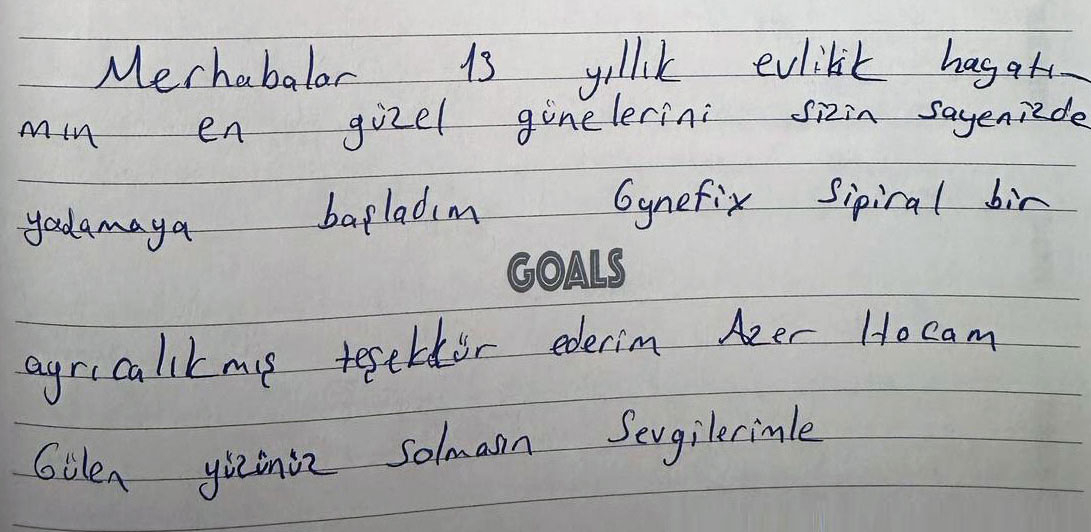 Merhabalar, 12 yıllık evlilik hayatımın en güzel günlerini sizin sayenizde yaşamaya başladım. Gynefix spiral bir ayrıcalıkmış, teşekkür ederim.